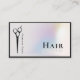 Stand out from the crowd with our elegant business cards. This unique design features a mesmerising holographic background and minimalistic design, perfect for hair salon, hair technicians and stylist. Easily display your contact details, website, and social media handles, leaving a lasting impression on potential clients. Note: The holographic details are simulated in the artwork. There will be no actual holographic shine effects when printed.