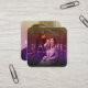 Stylish Holography Gold and Pink Abstract 2 Photos Square Business Card