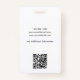 Impress with a stylish and professional identification badge. This double-sided template features your ID photo in a circle, and is personalised with a name, logo, contact information, and a scannable QR code. Customise the text to match your brand. This modern design would suit many different workplaces and professions, including corporate professionals, retail salespersons, beauty consultants, hotel staff, small businesses, conference name tags and more! Printed colours: slate blue, black and white.