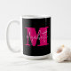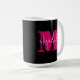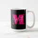 Stylish coffee mug features your first name in white over a hot pink initial letter monogram initial on a black background. MATCHING items in our collection.