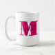 Stylish coffee mug features your first name in black over a hot pink initial letter monogram. MATCHING items in our collection.