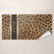Stylish Leopard Pattern Brown and Gold Stripe Name Bath Towel Set