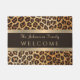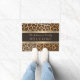 Stylish Leopard Print Brown and Gold Stripe Name Doormat