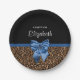 Stylish Leopard Print Elegant Blue Bow and Name Paper Plate