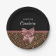 Stylish Leopard Print Elegant Brown Bow Party Name Paper Plate