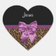 Stylish Leopard Print Elegant Purple Bow and Name Heart Sticker