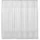 Classic grey and white shower curtain with an elegant damask pattern across the top and bottom edges and a stripe pattern at the middle.