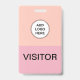 Trendy budget friendly visitor badges in a colourful logo template two side design you can use to replace our logo template with your own business logo or graphic. Used to hand out to visitors and guests to a business, venue, or convention.