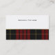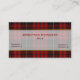 Stylish plaid business card done in the traditional red, yellow, and black clan MacQueen tartan pattern. The front of the card has a gold tone edged semi transparent white band, across the middle of the card, with custom red and black text. The back of the card is done in white, with a strip of plaid at the bottom, and black text on the white portion. Personalise all the text to suit your needs. Handsome and professional looking business card.