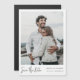 This simple, stylish modern photo wedding save the date magnet template features your names, date and wedding locale beneath your photo along with a 'save the date' message conveyed with a lively, relaxed font. This save the date script in black is an image and can't be altered. You might choose to change the font, punctuation or colour used for other text elements of this design. For example, you might choose to give a certain colour to the text that you edit to show your own details. The names, date and location text is a slightly softened black by default. Make this simply chic magnetic save the date card uniquely yours with the intuitive design tools, your favourite photo and your inspiration. We have a selection of other modern minimalist save the date cards in various formats, so please have a look!