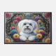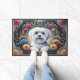 Stylish Maltese Dog Floral Colourful Border Doormat