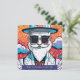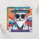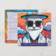 This card is made of a colourful illustration of a fashionable man with white beard, rectangle sunglasses and cylinder hat. This is a great invitation card for fashion related events.