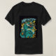 I give wanted to give this a 4 instead of a 5 because these Basic DARK T0shirts run unexpectedly SLIM or Narrow. Which is great if you do not have a potbelly, but I have a paunch. It isn't the shirt's fault that I've got a beer belly. The design and shirt itself is a quality cotton shirt. The color is more of a deep purple, but still a very pretty color. The Basic DARK T-shirts run a bit SLIMMER than the Basic Ts. The neck is a fraction narrower (or seems to be narrower) also. I'm a paunchy middle-aged woman and my neck is 12 inches (31cm) thick and the neckline fell about the same as in the photo of the man, and I had the desire to tug it a bit. So if you're a thick necked man or like loose shirts, be aware these are slimmer shirts. Once I get rid of my lockdown paunch it'll look great. The shirt washed well in cold water with no apparent bleeding. We don't have a dryer, so it hung dry. Did not shrink. Love the colors and the design. The design looks smaller on my shirt than it does on the model on-line. But still, it looks good on the shirt. The printing looks as it does on the model, just the size seems fractionally smaller. Washed garment in cold water, hung dry and design appeared unaffected.