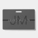 Stylish Masculine Dark Grey Name & Monogram ID Badge