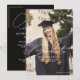 Stylish 2 in 1 graduation party invitation and graduation announcement featuring a large photo of the graduate with decorative overlays in the corners in a minimalist style to frame the graduate. Graduate is written across the photo in a modern signature script with the graduate's name and school and the year beneath. Add the invitation wording to the back inside the same minimalist corner frames with a stylish and miniamlist typography design.