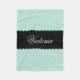 Stylish Mint Blue Black Design Custom Name Fleece Blanket