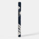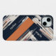 This cell phone cover features a sleek, modern design chraacterised by sharp, angular lines and bold colour blocking. The design includes a large, prominent orange stripe diagonally crossing the cover, set against a deep navy blue background. Surrounding this central stripe are dynamic streaks and lines in varying shades of beige, black, and red, creating a sense of motion and energy. Your name is printed twice in white serif font, adding a personalised and refined touch. Replace the names or delete them. The art style is contemporary and abstract, combining geometric precision with a sense of speed and fluidity for a visually striking effect.