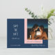 This simple modern design features your personalised Save The Date information and favourite photo on a blue background with pink accent. Personalised by editing the text in the text boxes provided #savethedate #wedding #weddingstationery #personalised #personalizedstationery #weddinginspo #customwedding