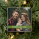 Stylish Modern Christmas - Photo Year Green Stripe Ceramic Tree Decoration