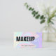 Gorgeous makeup business card design featuring colorful faux holographic texture and elegant calligraphy font.