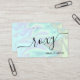 Gorgeous makeup business card design featuring colourful faux holographic texture and elegant calligraphy font.