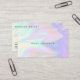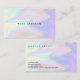 Gorgeous makeup business card design featuring colorful faux holographic texture and elegant calligraphy font.