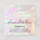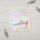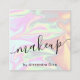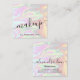 Gorgeous makeup business card design featuring colourful faux holographic texture and elegant calligraphy font.