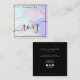 Gorgeous makeup business card design featuring colorful faux holographic texture and elegant calligraphy font.