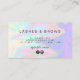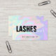 Gorgeous lashes & brows business card design featuring colourful faux holographic texture and elegant calligraphy font.