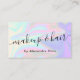 Gorgeous makeup & hair business card design featuring colorful faux holographic texture and elegant calligraphy font.