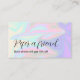 Gorgeous lashes & brows referral card design featuring colourful faux holographic texture and elegant calligraphy font.