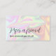 Gorgeous lashes & brows referral card design featuring colourful faux holographic texture and elegant calligraphy font.