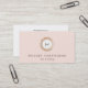 Sophisticated and glamourous, this retro inspired business card is perfect for entertainment professionals whether it be a fashion stylist or freelance makeup artist. Digital image of gold sequin framed circle emblem on blush pink background. There is no shine or texture to this card.