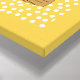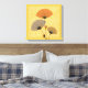 A beautiful floral picture on stretched canvas in lovely shades of mustard yellow, taupe, orange and white; a retro inspired modern mid century floral illustration on polka dot spots.