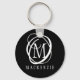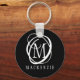 Stylish, elegant key chain personalized with a decorative monogram or initial in white with a name against an editable black background. CHANGES: Change the background color, choose a style graphic background or change the text font style, color, size and placement by clicking on CUSTOMIZE FURTHER under the PERSONALIZE section. Contact the designer via Zazzle Chat or makeitaboutyoustore@gmail.com if you'd like this design modified, on another product or would like coordinating items.