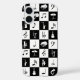 A great gift for any musician or music lover, this cool design features a modern and stylish black and white check squares pattern with various musical notes and musical instruments in alternating colours. It includes pianos, trumpets, drums and saxophones with music notes and treble clefs.
