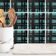 This interesting print looks like a painted plaid. Abstract and modern. Turquoise with hints of black throughout. Whether you want to use this tile as a little coaster or trivet for a drink or plate... or you want to go big with a kitchen backsplash or bathroom tile, is up to you! Do a full wall, border, or just an accent tile. Let your interior design dreams fly! Stylish Abstract Turquoise Black Plaid Pattern ceramic tile