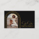 Stylish Modern Script Photo QR Code Photography Photographer Business Cards features a stylish and elegant golden script with your favourite photo inside golden arches with your business details and custom business website QR code on the reverse. On the reverse is your personalised contact details. Designed by © Evco Studio www.zazzle.com/store/evcostudio