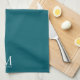 Custom Text And Color Dark Teal Blue And White Monogram / Monogrammed Elegant Modern Cute Kitchen & Dining / Table & Kitchen Linens / Initial Name Personalized Template Kitchen Towel.