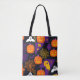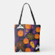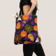 This festive Halloween tote features a playful and vibrant design filled with classic spooky elements. Against a rich black and purple backdrop, bright orange jack-o'-lanterns with glowing expressions take centre stage, accompanied by smiling ghosts, creepy spiders, and intricate cobwebs. The design is sprinkled with bats and stars, adding to the lively Halloween atmosphere. Bold and cheerful, this tote is perfect for trick-or-treating, carrying autumn essentials, or adding a fun, seasonal touch to your everyday wardrobe. Its bright colours and whimsical characters capture the spirit of Halloween, making it a must-have for any fall lover.