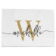 Girly Stylish Modern Elegant White and Gold Monogram Initial Name Script Custom Personalised Gift Bag. This design featuring a first name in a pretty hand lettered swash tail font calligraphy (or typography) with monogram initial in gold and black on white colour background. Easy to customise it. This feminine gift bag great for housewarming gift, also for birthday, sweet 16 birthday party, wedding, mother’s day, bridal shower, baby shower, for graduation party gift and It’s for the girl who loves trendy unique things.