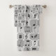 Stylish Monochrome Geometric Music Notes Pattern Bath Towel Set