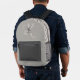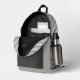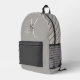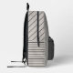 A neutral taupe, beige and charcoal grey pattern with stripes and solids, this backpack is a tasteful choice for school, office, travel and more. A stylish and unique monogram design displays the initial of your first name in both a simple serif font and an elegant calligraphy font in the background. Your name is displayed below your monogram initial in this unique typography custom design. The three elements blend together with a sophisticated harmony and create your own personal branding logo. Personalise with your name and monogram.