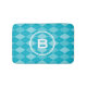 Stylish monogram aqua blue argyle pattern bath mat Trendy diamond shape print design with custom background colour ie turquoise blue. Classy typography for monogrammed initial letter. Create your own classy bathroom interior with this stylish print template. Personalised name initials. Pretty home decor ideas for your house. Suitable for men and women. Trendy retro bathroom rug for home or hotel.