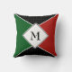 Simple but stylish CUSTOMIZABLE MONOGRAM Throw Pillow showing triangles and square in PAN AFRICAN colours of RED, BLACK and GREEN. Matching Fleece Blanket available.