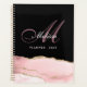 Monogram stylish script lettering with an elegant black background with girly blush pink and gold agate. The text features can be customised.