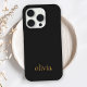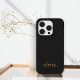 Stylish Monogram Modern Minimalist Black and Gold Name Phone Case.