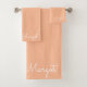 Stylish monogram modern peach script bath towel set