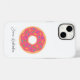 Stylish Monogram Name Script Simple Modern Doughnut Case-Mate iPhone 14 Case. Attractive, cute, funny simple phone case with a casual handwritten script font. The design features a pink frosted doughnut with room to personalise the phone case with your name. Contact me at truullc@gmail.com for matching products.