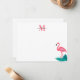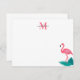 Stylish Monogram Tropical Leaves Hot Pink Flamingo Note Card